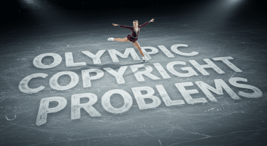 PS Gen AI art “Olympic Copyright Problems” in the style of ice skating brought to you by “the only image that had the spelling correct” and “just skate through the pain” and “still can’t do faces”.