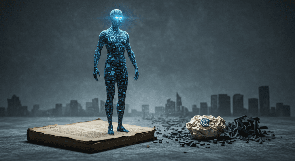 PS Featured Gen A image “Copyright vs AI” brought to you by apocalyptic imagery and ominous not-so-subtle tones that AI believes IT will be the one who comes out on top in this battle.