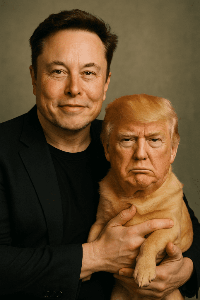 PS Gen AI “an image of Elon Musk and his lap dog that has a face that strongly resembles Donald Trump” brought to you by I don’t want to say this is the greatest AI image created, but it is pretty great.