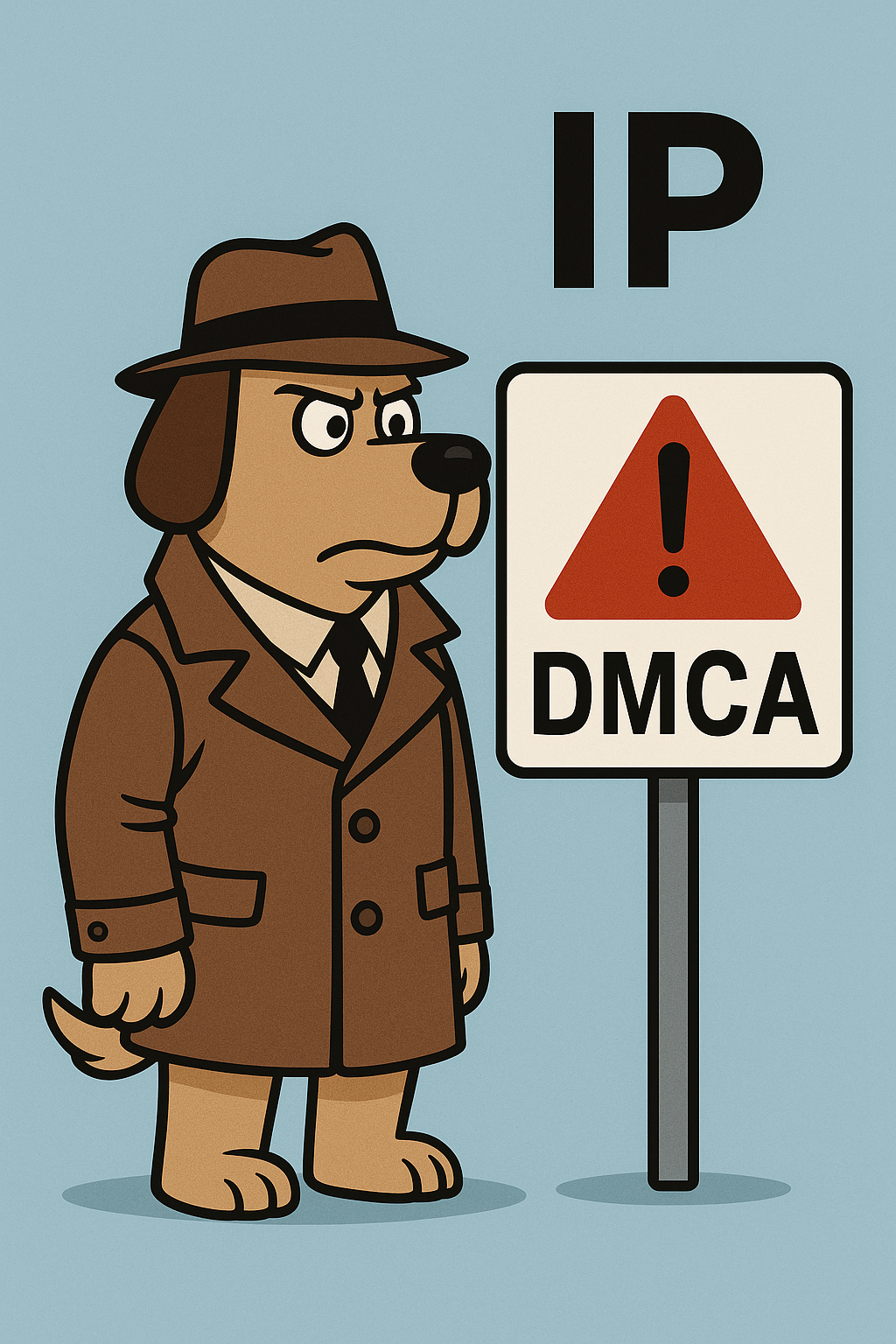 PS Featured Gen AI image based on the prompt “An IP Watchdog watches a DMCA” brought to you by 1990s hand drawn art. Simple, but does the job. Makes no sense, but sort of does the job, I guess.